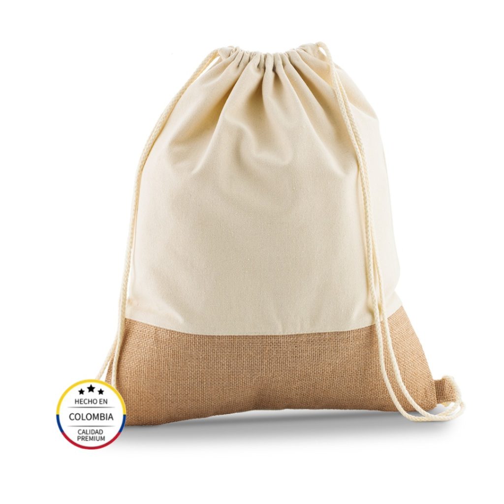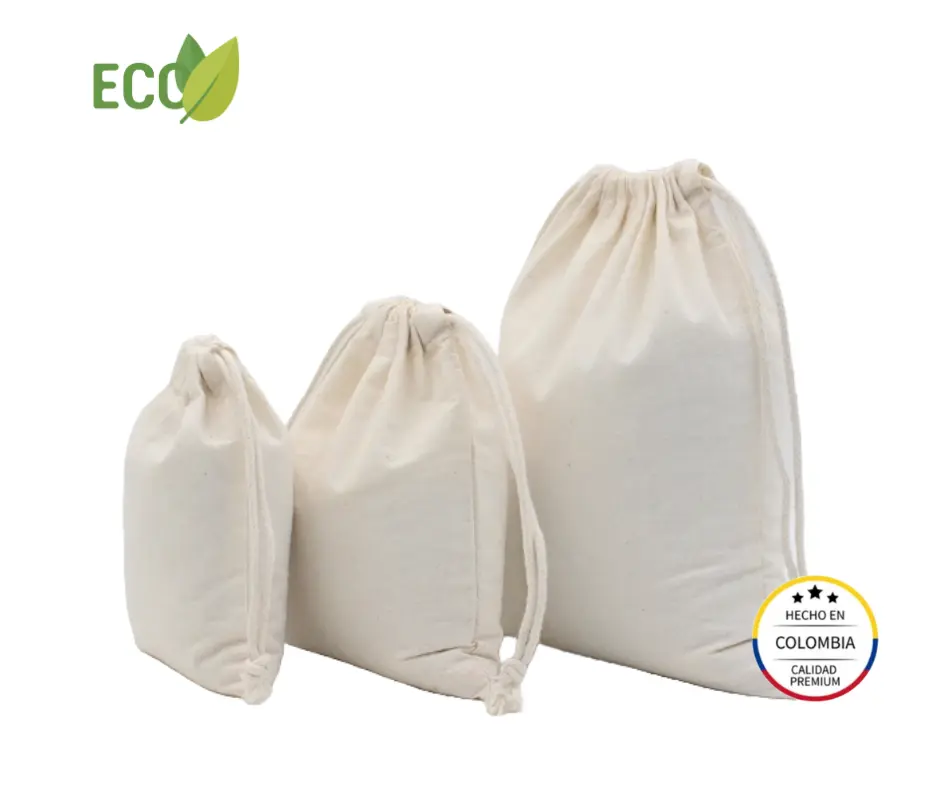 Bolsa tipo tula de fabricacion nacional; se caracteriza por su cordón para cierre en la parte superior y sujetar en la espalda; tela en algodón natural100% organico.